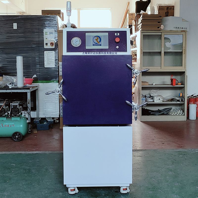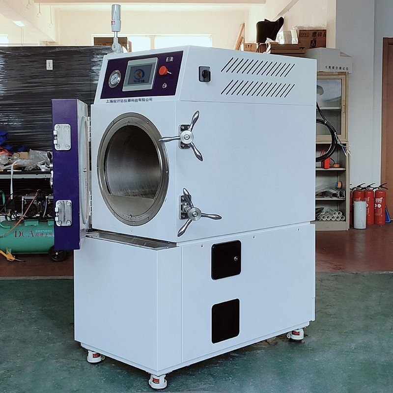 I. Product Introduction The high-pressure accelerated aging test chamber is a specialized test chamber mainly used to simulate the performance of materials under high-temperature, high-pressure and high-humidity environments. The inner liner of the PCT aging chamber adopts an arc design and complies with national safety container standards. It is suitable for industries such as defense materials, aerospace materials, electronic components, semiconductors, and circuit boards. Ii. Technical Parameters 1. Box dimensions: φ400×480mm (dimensions can be customized) 2. Dimensions: 720×920×1900mm 3. Temperature range: 100℃ to 130℃ (saturated vapor temperature) 4. Temperature fluctuation: ±0.5℃ 5. Temperature uniformity :2℃ 6. Humidity range: 80%R.H to 100%R.H 7. Humidity fluctuation ±1.5%R.H 8. Humidity uniformity: 3.0%R.H 9. Pressure range :0.2 to 3kg/cm² (0.05 to 0.294MPa) 10. Heating time: Approximately 40 minutes to rise from room temperature to 145 °C Iii. Product Features 1. The circular stainless steel inner box structure can prevent condensation and dripping during tests, meeting the standards for industrial safety containers. 2. Pressure-regulating door lock with good sealing performance. 3. Precise structural design, low water consumption, and each water addition can last for 200 hours continuously. 4. Safety door design: Tests cannot be conducted without closing the door. 5. Overpressure protection: Automatic exhaust and pressure relief in case of overpressure. 6. Over-temperature protection: When the temperature is too high, the indicator light will sound an alarm and the test will be stopped. Iv. Applicable Standards GB/T10586-1989 Technical Conditions for Wet Heat Test Laboratories. GB2423.3-93(IEC68-2-3) Constant damp heat test. MIL-STD810D Method 502.2 GJB150.9-8 Temperature and Humidity test. GB2423.34-86, MIL-STD883C Method 1004.2 Temperature, Humidity and high Pressure combined cycle Test.- Name(chinese)