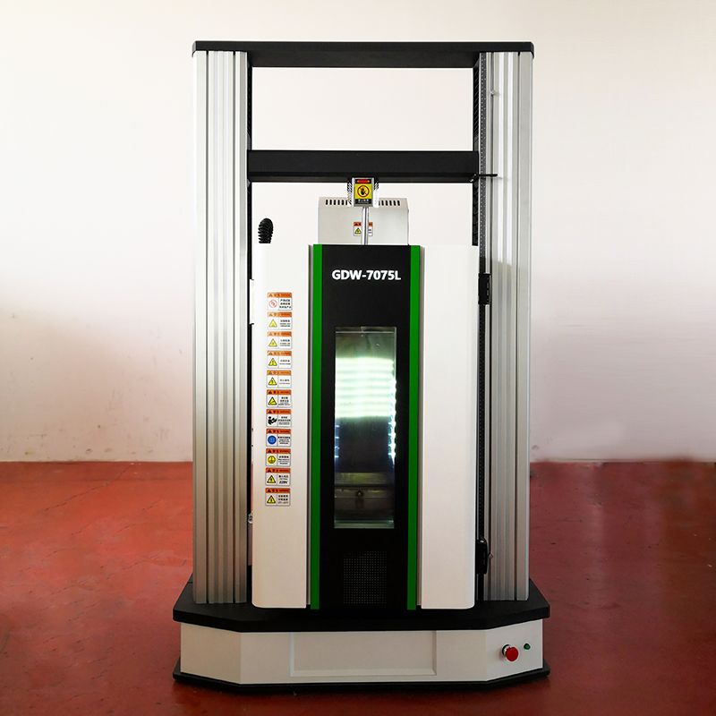 I. Product Introduction It is applicable to multiple physical and mechanical property tests such as tensile and compressive tests of materials under high and low temperature, constant temperature and humidity environments. Mouse selection operation, data and curves are dynamically displayed during the test process. Simple and convenient. It is applicable to the mechanical property tests of materials such as metals, plastics, rubber, electronic and mechanical products, aerospace, energy materials, medical chemicals, etc. under constant temperature and humidity conditions. Ii. Technical Parameters Maximum force: 10KN, 20KN, 50KN 2. Speed range: 1-500mm/min 3. Effective stroke of the crossbeam: 1000mm 4. Effective width: 600mm Iii. Technical Parameters of the Environmental Chamber Effective volume: 75L 2. Dimensions: 580×2100×1650mm (width, depth, height) 3. Studio dimensions: 330×350×650mm (width, depth, height) 4. Temperature range: -70℃ to +150℃ 5. Temperature fluctuation: ≤±1℃ 6. Temperature uniformity: ≤2℃ 7. Temperature deviation: ≤±2℃ 8. Heating and cooling rates: Heating rate: 2-3℃/min, cooling rate: 0.7-1℃/min 9. Humidity range: 10%RH to 98%RH 10. Humidity fluctuation: ≤+2%RH/-3%RH 11. Humidity uniformity: ≤3%RH 12. Humidity deviation: ≤±3%RH- Name(chinese)